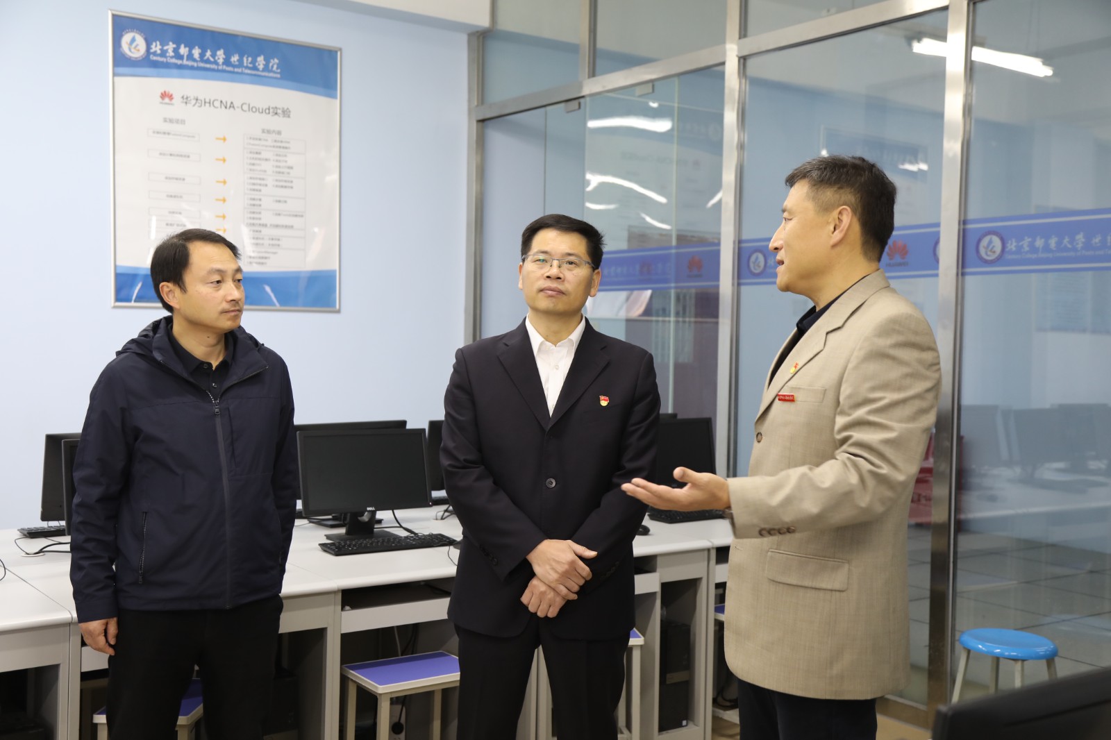 宋红伟检察长一行调研了学院行知楼实验教学中心,在参观了由中国长城博物馆与学院联合举办的“长城文化进校园”系列活动之“众志成城——纪念‘爱我中华 修我长城’社会赞助活动40周年”主题巡展后,特别调研了学院北京高等学校实验教学示范中心——5G仿真平台实验室、大数据存储/大数据综合实训实验室、互联网金融实验室、全景虚拟商业社会环境(VBSE)综合实验室及数字媒体实验教学中心,并听取了学院就学院科研团队主导创设的“手机(移动终端)动漫标准”“文化艺术AR呈现技术需求及应用框架”“云游戏技术要求及参考架构”国际标准及《手机动漫文件格式》国家标准的介绍。