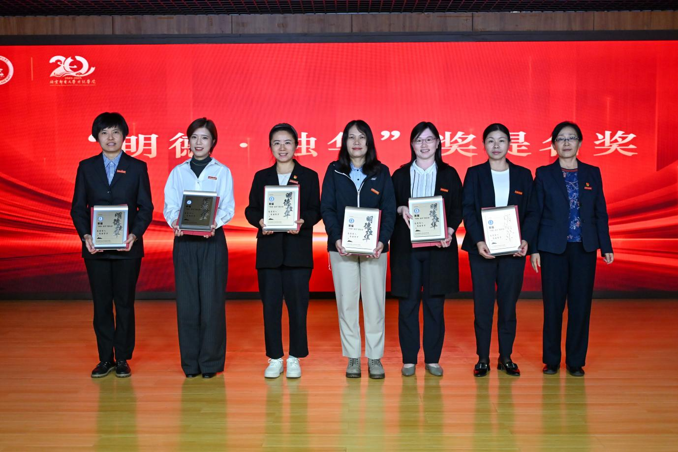 大会隆重表彰了“廿载耕耘”纪念奖和学院首届“明德·烛华”奖获奖人员,致敬用20年的坚守与奉献见证学院成长的教职工,也致敬在三尺讲台以心血持续书写育人篇章的一线教师。