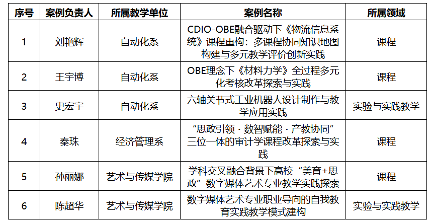 此次6项案例获评,既是学院教育教学改革工作的阶段性成果,也为后续实践提供了参考方向。希望获评案例的教师团队进一步完善细节、总结经验;学院鼓励全院教师以此为借鉴,积极投身教育教学改革,结合实际探索解决教学问题,共同提升学院人才培养质量。(教务处 供稿/综合部 编辑)