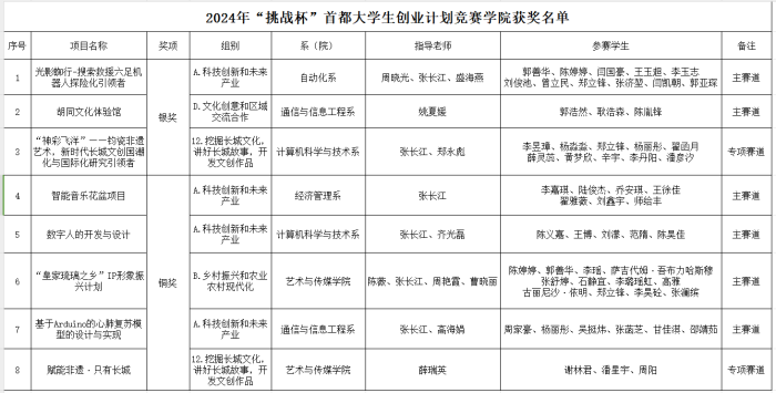 近日,“青创北京”2024年“挑战杯”首都大学生创业计划竞赛落下帷幕,学院学子最终获得3银5铜的优异成绩。