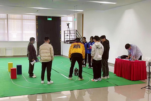 依托智能机器人综合创新实践基地的硬件资源,麻柏慧、刘超老师对参赛项目进行决赛培训。老师们不仅讲授了机器人设计原理和控制方式,还全面剖析了比赛规则和评分标准。在人工智能与机器人创意设计组的培训中,老师根据比赛规则为学生们有针对性地讲解了答辩思路及机器人各部分构成等,经过多次模拟答辩,学生更好了解和讲解好自己的参赛作品。类人机器人竞技组的培训则是通过理论与实践相结合的方式,老师们凭借多年经验对学生编写的机器人动作和传感器采集处理等提出建议,保证在机器人稳定的基础上,提高传感器采集精度,取得更好的成绩。参赛学生更是积极投入到竞赛备战,利用晚上和周末的全部时间到智能机器人实验室调试机器人。