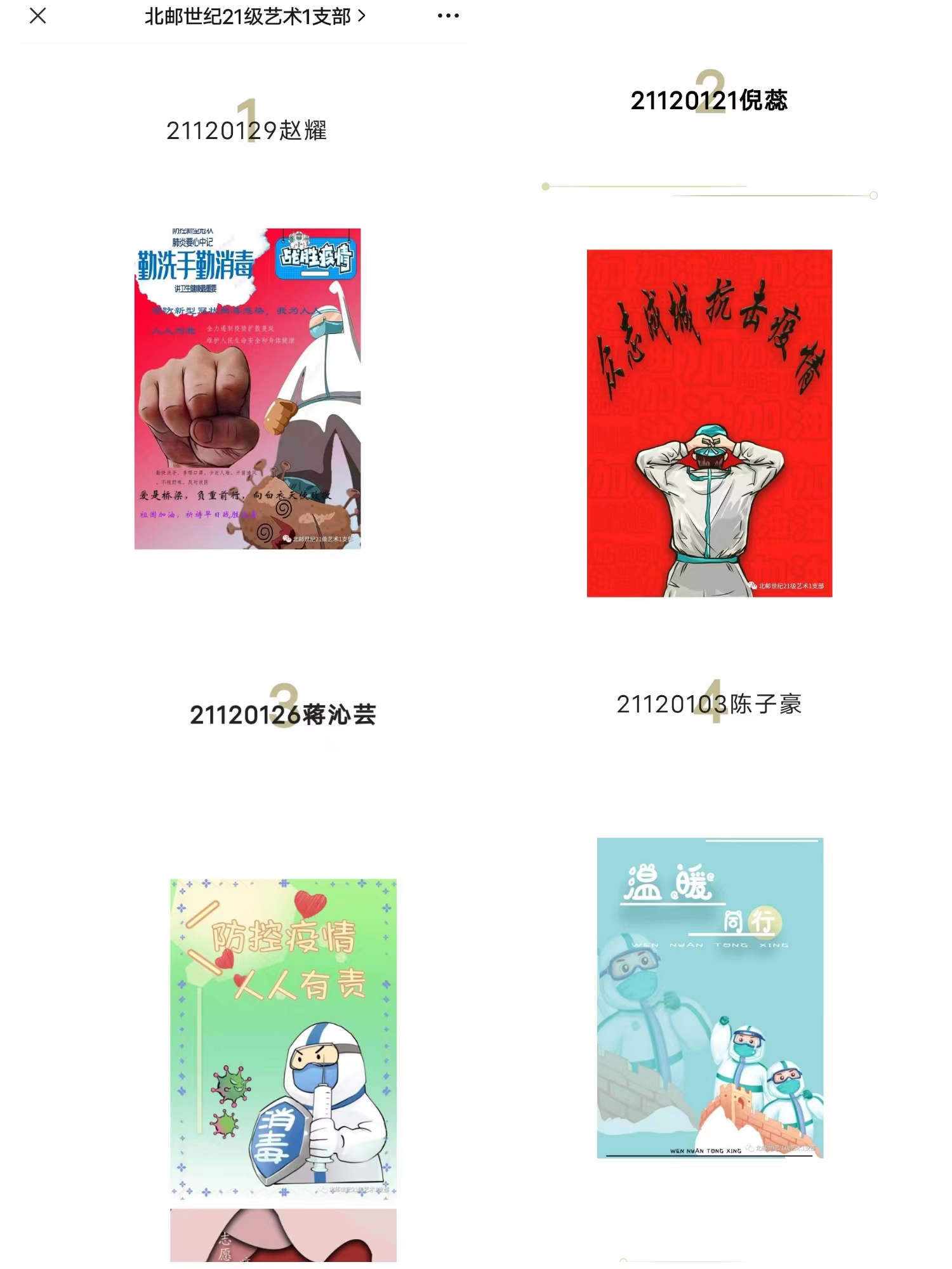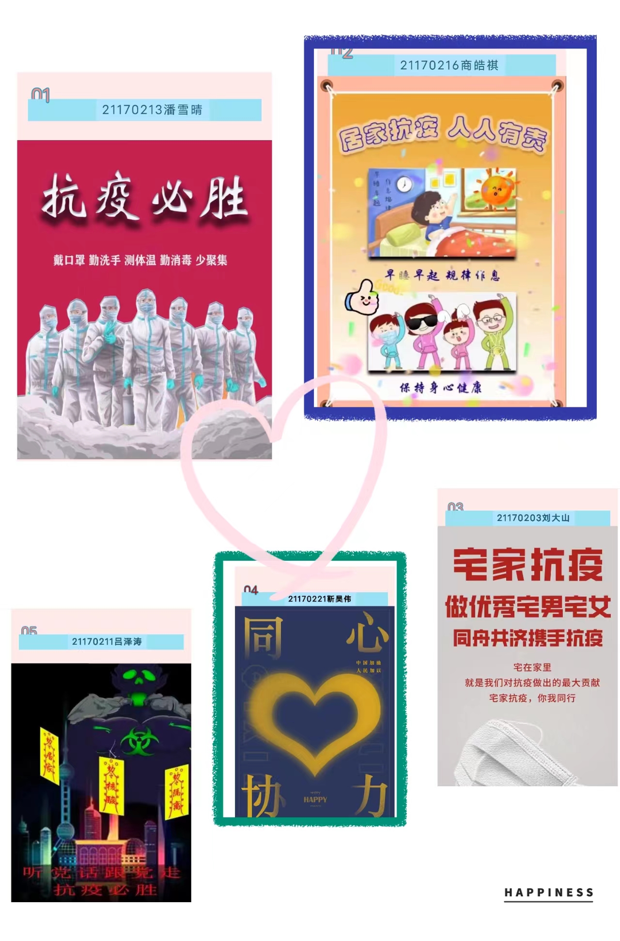 此次活动以线上征集形式开展,得到了同学们的积极响应,收到电子海报作品20余份。同学们的作品内容丰富、主题鲜明,表现了同学们对抗疫一线工作人员和抗疫志愿者的敬佩与感恩,传递同舟共济、顽强拼搏、共同抗疫、乐观向上的精神风貌。