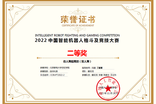 近日,“2022中国智能机器人格斗及竞技大赛”成绩公布,学院共派出3支队伍参赛,获得二等奖3项。