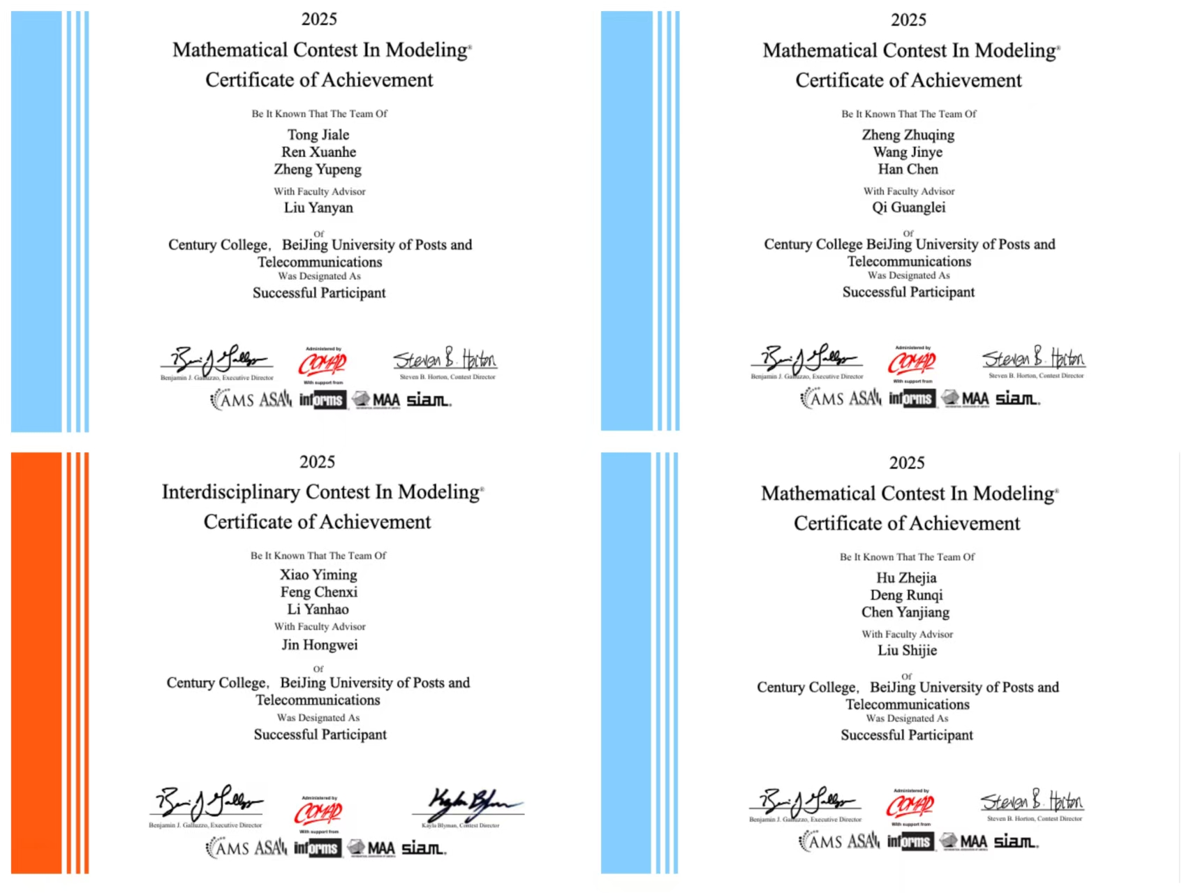 近日,2025年美国大学生数学建模竞赛(MCM/ICM)成绩公布,学院学子凭借出色的表现斩获多项荣誉。本次竞赛中,学院共有33支队伍(99人)报名参赛,经过激烈角逐,最终3支队伍荣获二等奖(Honorable Mention) ,28支队伍获得成功参赛奖(Successful Participant) ,整体获奖比例高于赛事平均水平,充分展现了学院在数学建模领域的深厚积累和强劲实力。