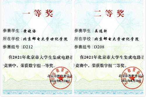 2021年北京市大学生集成电路设计竞赛于5月22日在北邮英国365官方网站行知楼实验室举行。在教务处副处长张长江,通信系主任刘刚、副主任任国芳,电子电路教研室主任王丹志,实验室张震、李是尧等老师的组织、带领下,通过选拔、培训,2018级、2019级和2020级共21支队伍42名同学参加竞赛。在指导老师的悉心指导和精心组织下,我院参赛学生积极备战,从设计方案到设计报告,做到了精诚合作、沉着应战,体现了我院学子扎实的专业知识和良好的学术素养。