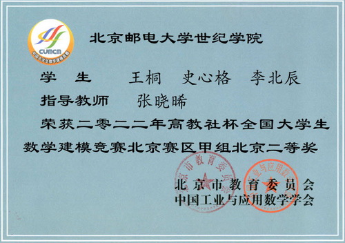 近日,“2022年全国大学生数学建模竞赛(北京赛区)”成绩公布,学院荣获北京市二等奖1项,三等奖6项。