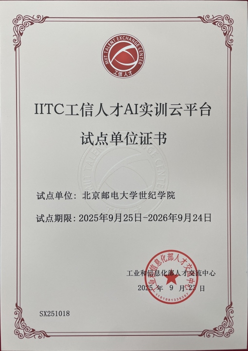 9月25日,由工业和信息化部人才交流中心牵头,联合阿里云智能集团、湖北易康思科技有限公司及生态合作伙伴推出的“IITC工信人才AI实训云平台”正式发布。学院作为首批试点单位之一,应邀参加发布会并获颁试点单位证书,此举是学院在人工智能实训教学领域的一项新拓展。