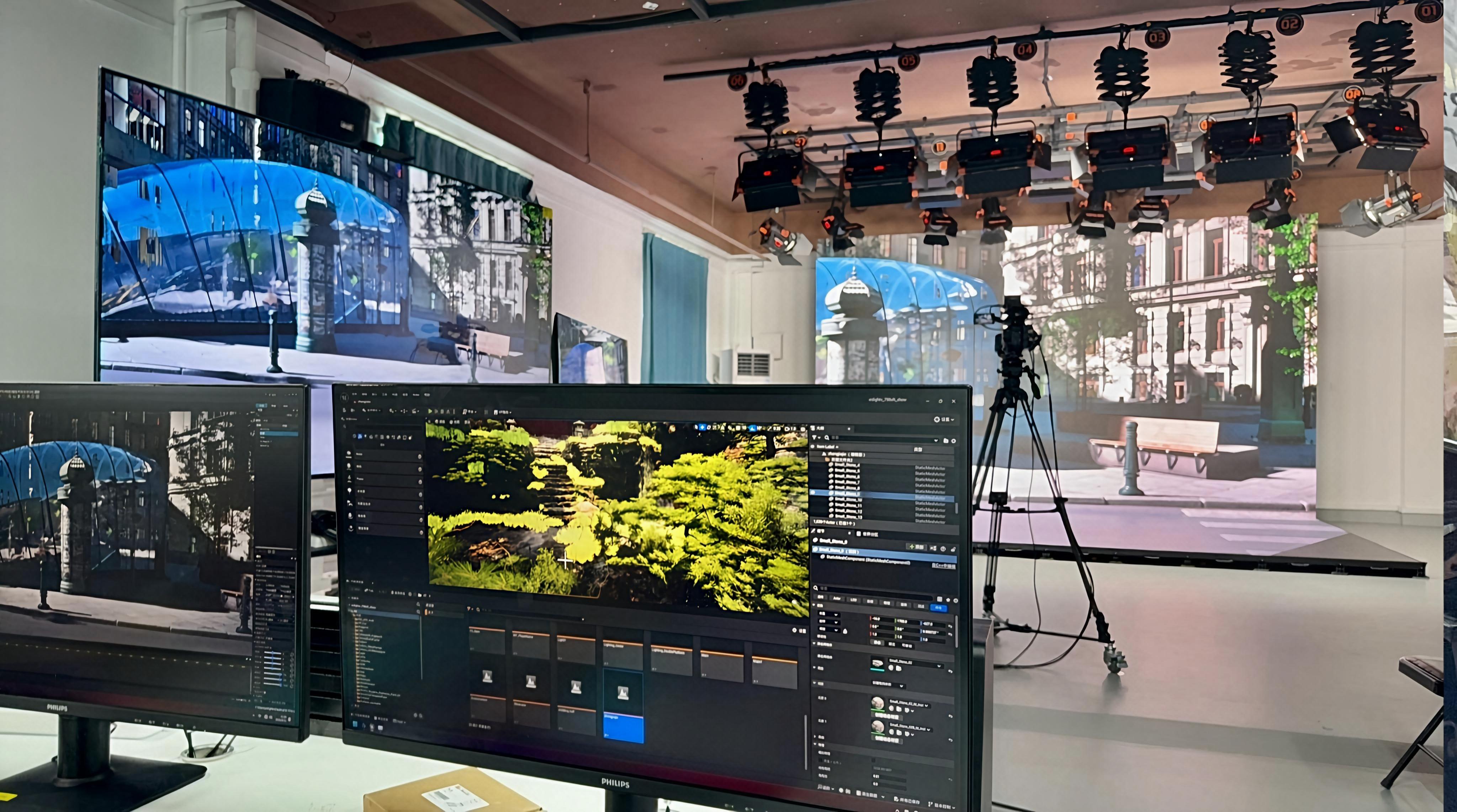 虚拟拍摄显示系统:采用LED立面和地面屏,支持360°无限场景视觉呈现。