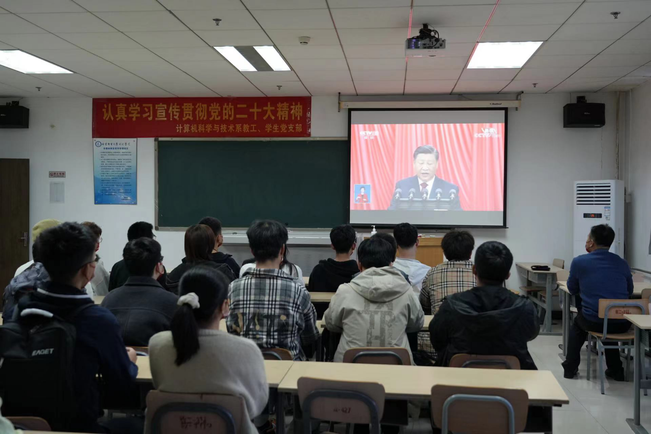 计算机科学与技术系广大师生以高昂的精神风貌和饱满的热情,收听收看二十大开幕会盛况。计科系教工党支部、学生党支部、各个团支部等在明德楼330会议室、明德楼多媒体教室、学生公寓、图书馆及线上等地点收看大会报告,第一时间学习领会大会精神,师生纷纷发表学习心得: