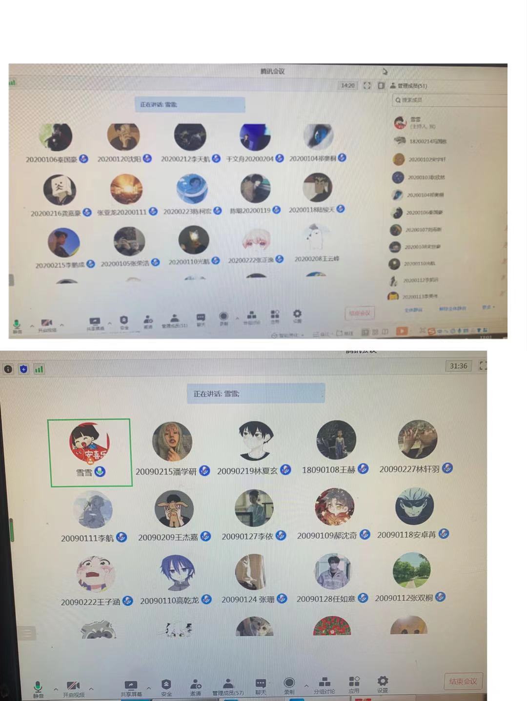 6月9日下午,2020级自动化系全体同学参加“将坚持进行到底,用行动回馈梦想”期末总结及诚信教育线上主题班会。班会由辅导员闫雪老师主持。