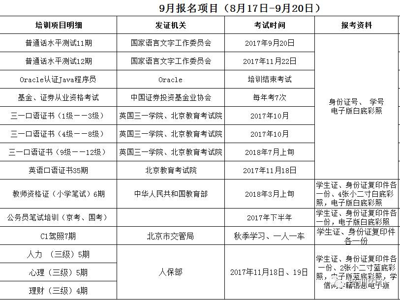 近日,培训中心面向全院师生开展9月份培训活动的报名,欢迎广大老师、同学报名。同时,所有培训项目面向延庆区,欢迎院外人员报名参加。